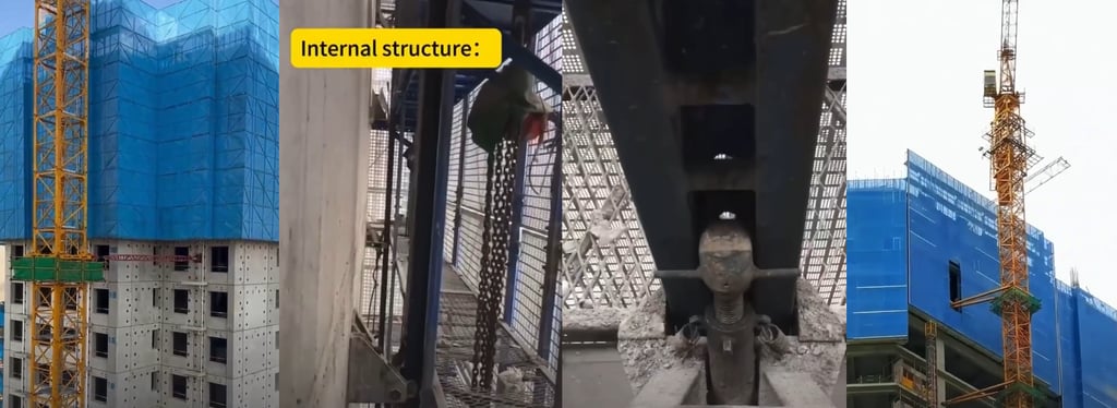 Elevação do sistema: As fôrmas são elevadas para o nível superior por meio de grua ou por sistema hidráulico integrado.